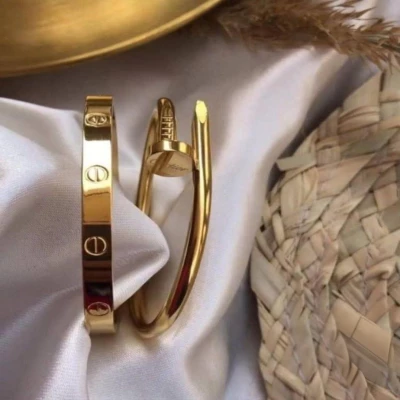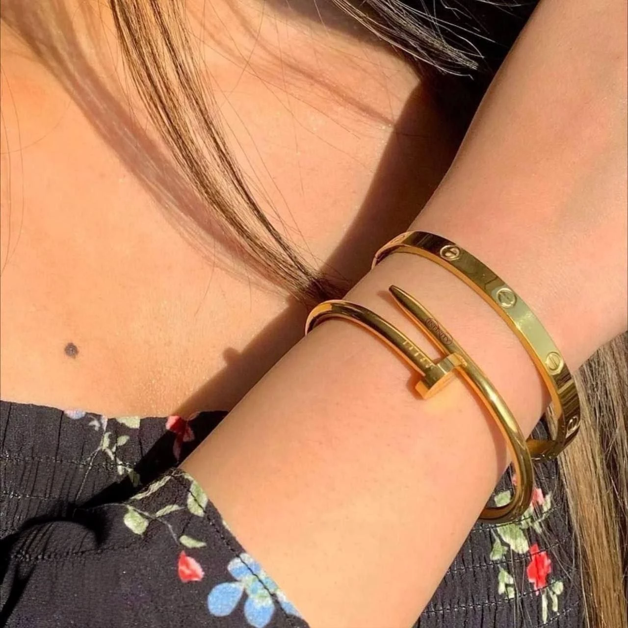 ارتقي بإطلالتك مع طقم الأسوِرة الكارتير والمسمار ستانلس بيور — تصميم يجمع بين الفخامة الكلاسيكية والجرأة العصرية في قطعة واحدة من الأناقة اللامتناهية.