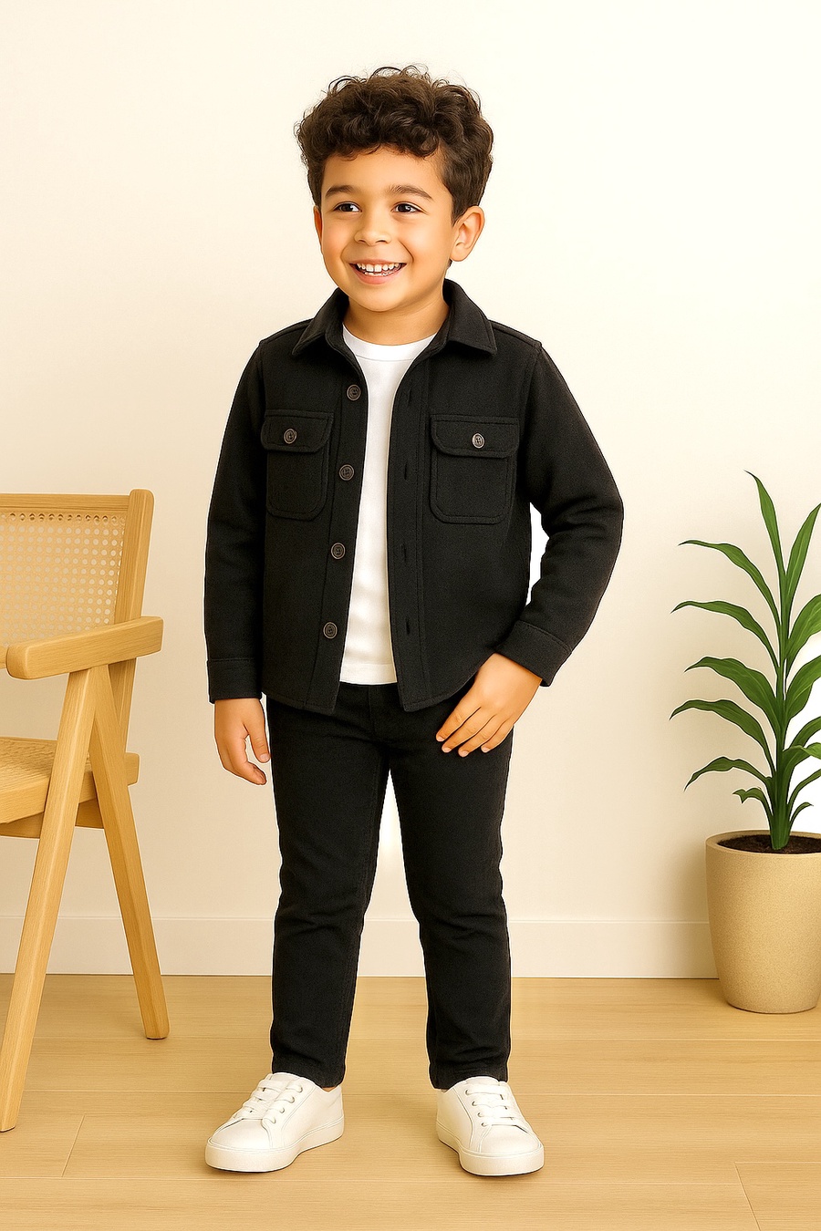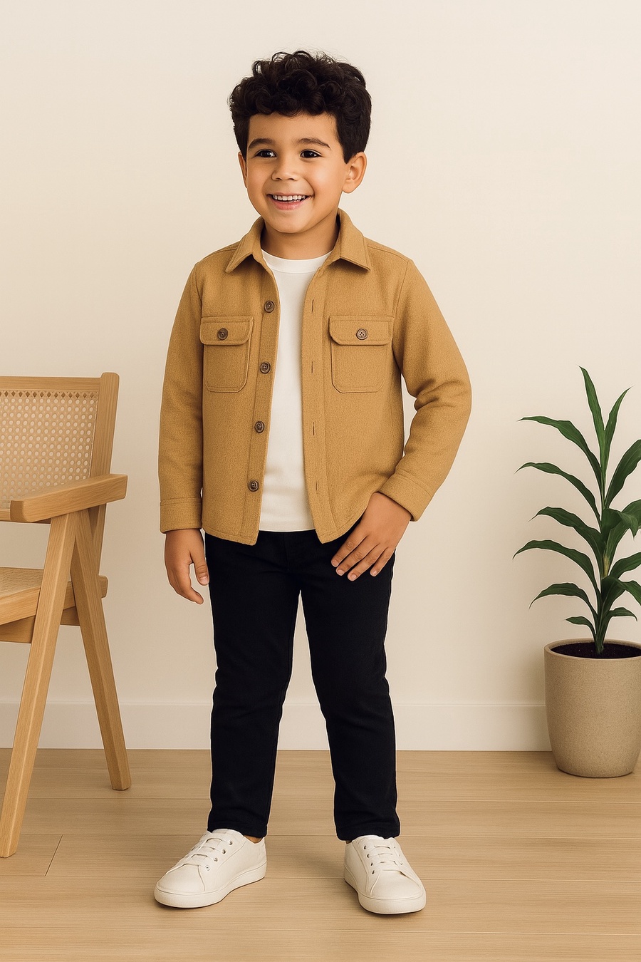 خلي ابنك دايمًا شيك وملك الدفا مع قميص الجوخ الأطفال 😍 خامة تقيلة وأنيقة تخليه مستعد لأي خروجة في الشتاء، ستايل عالمي ومريح في نفس الوقت!
