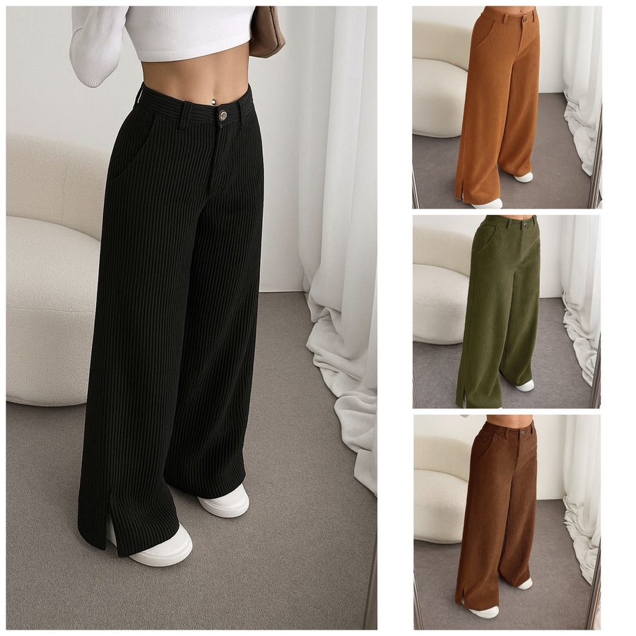 بنطلون القطيفة المضلع وايد ليج هو اختيارك الأمثل لشتاء 2026… خامة تريندي، تصميم مريح، وإطلالة راقية بكل التفاصيل.